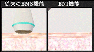 ENIは、エレクトロポレーション(電気穿孔法)ともいい、特殊な電気パルス一時的に皮膚に小さな穴を開けて、肌を傷付けずに美容成分の浸透度を高める効果が期待できます。(イメージ動画)
